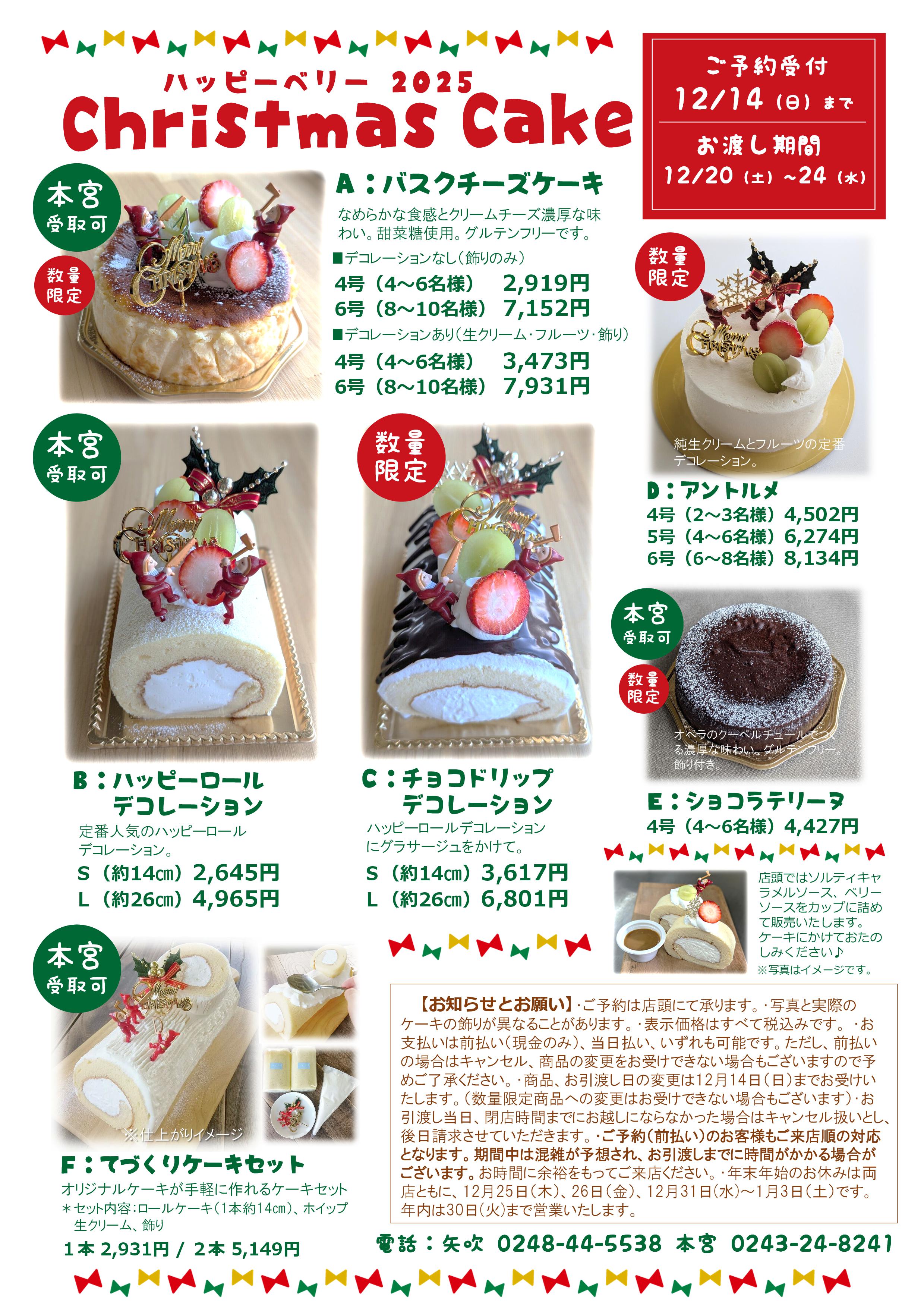 クリスマスケーキの飾りや、ソルティキャラメルソース・ベリーソースも販売予定です。